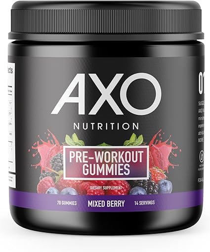 Amazon Com Axo Nutrition Pre Workout Energy Gummies Caffeine Beta Alanine B12 And Chromium Picolinate Non Gmo All Natural Gluten Free Mixed Berry Flavor 14 Servings 1 Count Health Household